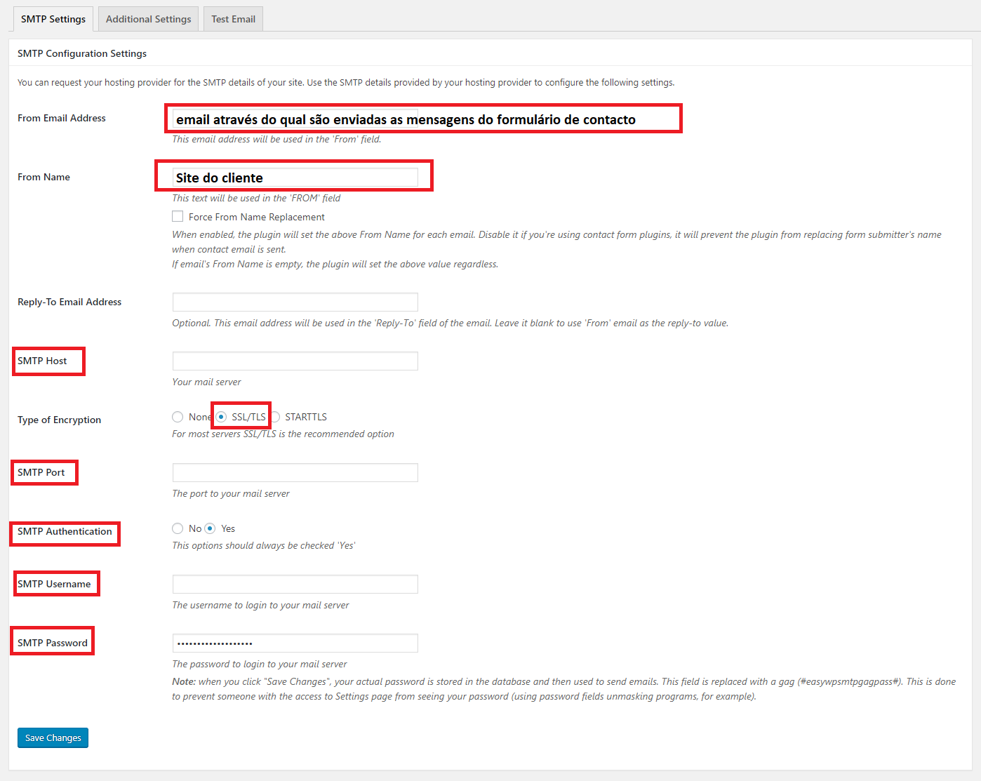 Para o bom funcionamento do formulários de contacto por vezes temos de colocar os dados de SMTP, para não haver erros de envio.